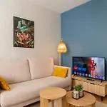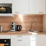 - ❓Is there a kitchen available at this apartment for guest use?Yes, this apartment is furnished with a full kitchen and offers an electric kettle, a refrigerator, and an oven as well.
